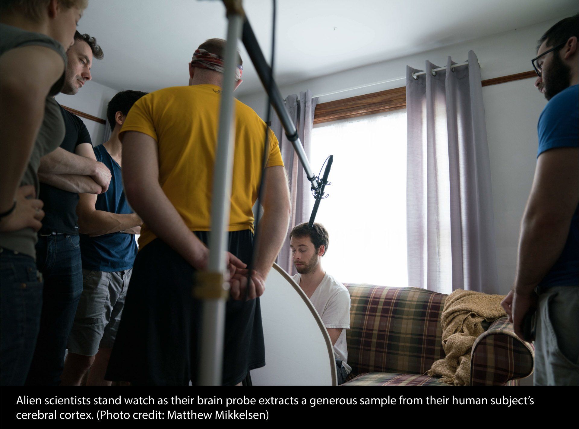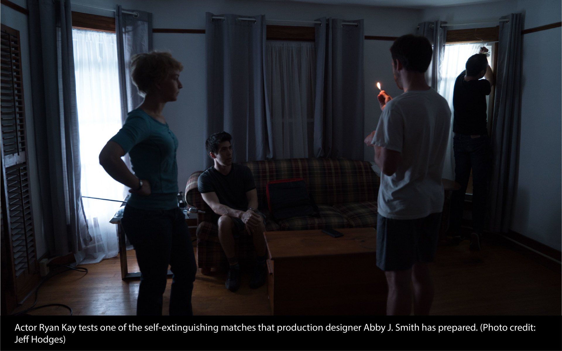 Actor Ryan Kay stays patiently on his mark as the production swirls around him during the filming of the final scene.